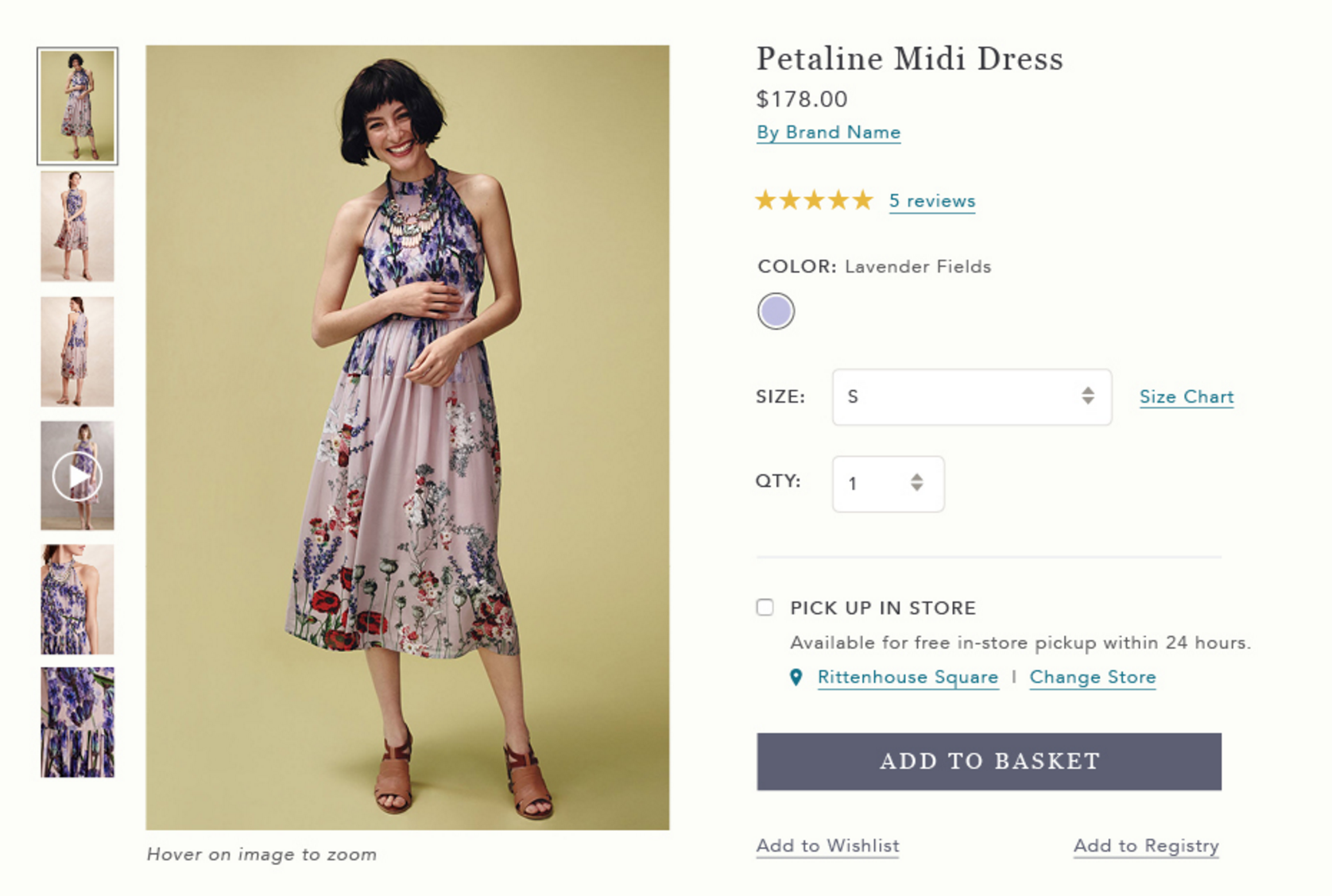 We are going to start on a category page. Please pretend you have reviewed the details of this dress in a previous session and have decided you want to purchase it. There are no rules, or specific instructions, we’d just like you to talk through the process as you add this product to your shopping basket.